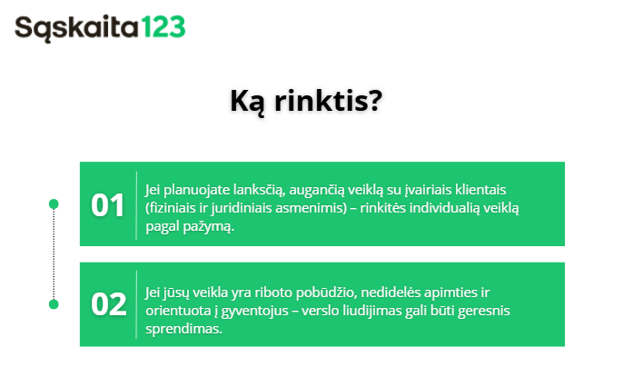 - Užsiimant kai kuriomis veiklomis, galima dirbti su įmonėmis – pvz., atliekant tam tikrus statybos ar remonto darbus.